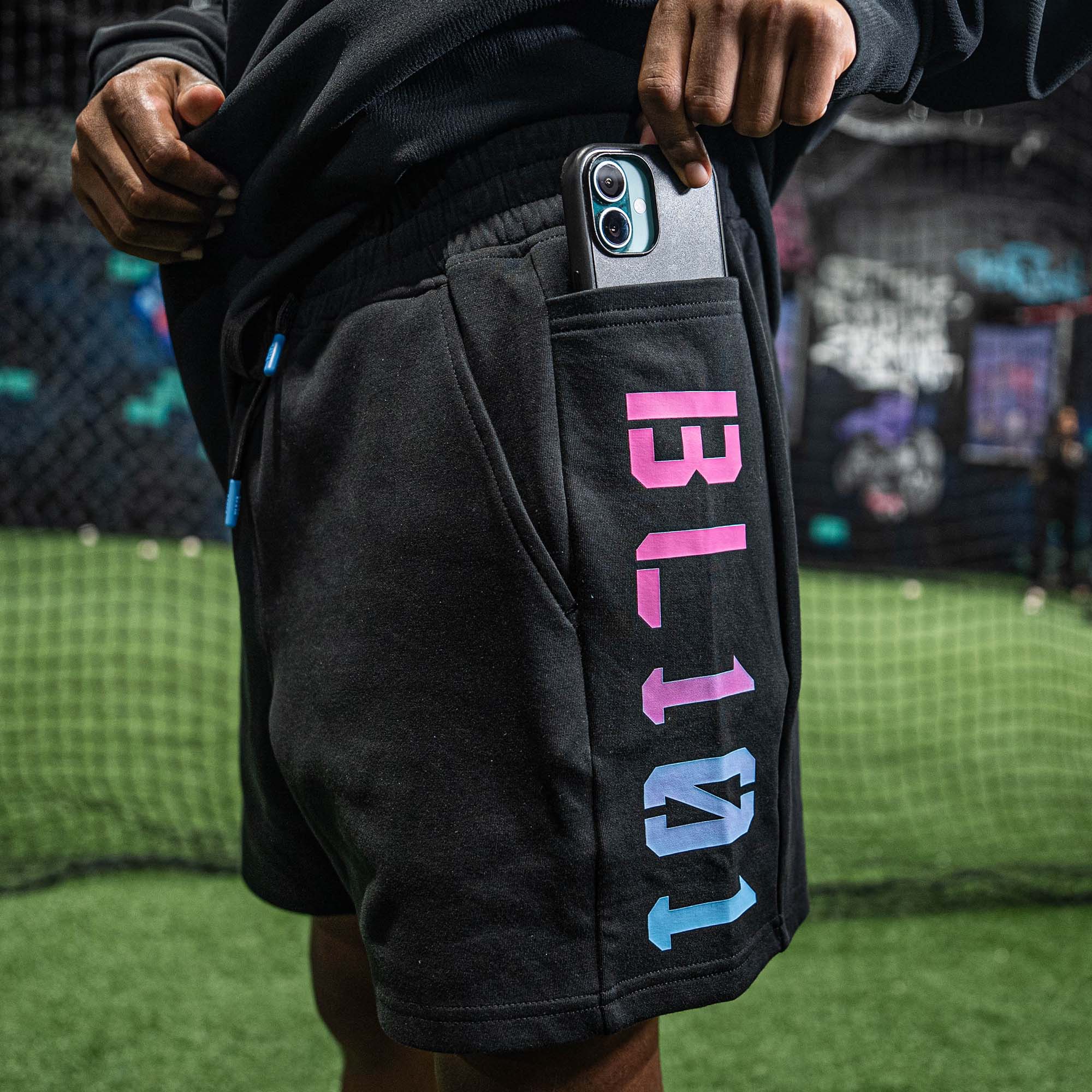 The Diamond Relaxed Fit Sweatshorts – Black/Cotton Candy are built for the off-season when the uniform comes off, but the work never stops. Fall ball means long toss in the crisp air, late-night lifts, and plotting your comeback for spring. Lightweight yet durable, these shorts give you the comfort you need for those chilly morning jogs around the warning track or lazy Sundays watching the playoffs from the couch. Whether you’re running sprints in the outfield grass, grabbing coffee after practice, or breaking down film with the squad, these sweatshorts are your off-season uniform. Because every rep you put in this fall sets the tone for Opening Day. 79% cotton/15% polyester/6% spandex Side Zip Pocket & Open Side Pocket Elastic Waistband with Drawcord