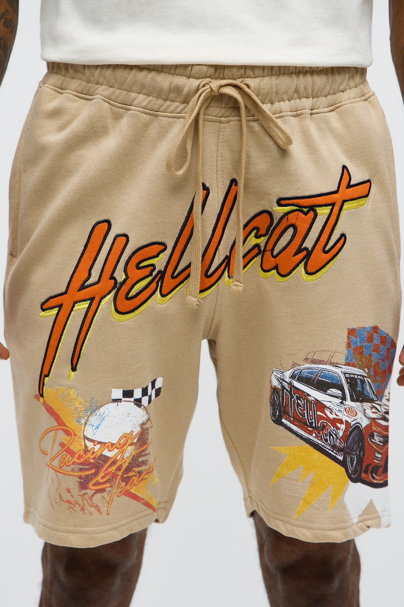 Dodge Hellcat Racing Embroidery Sweatshorts – Khaki