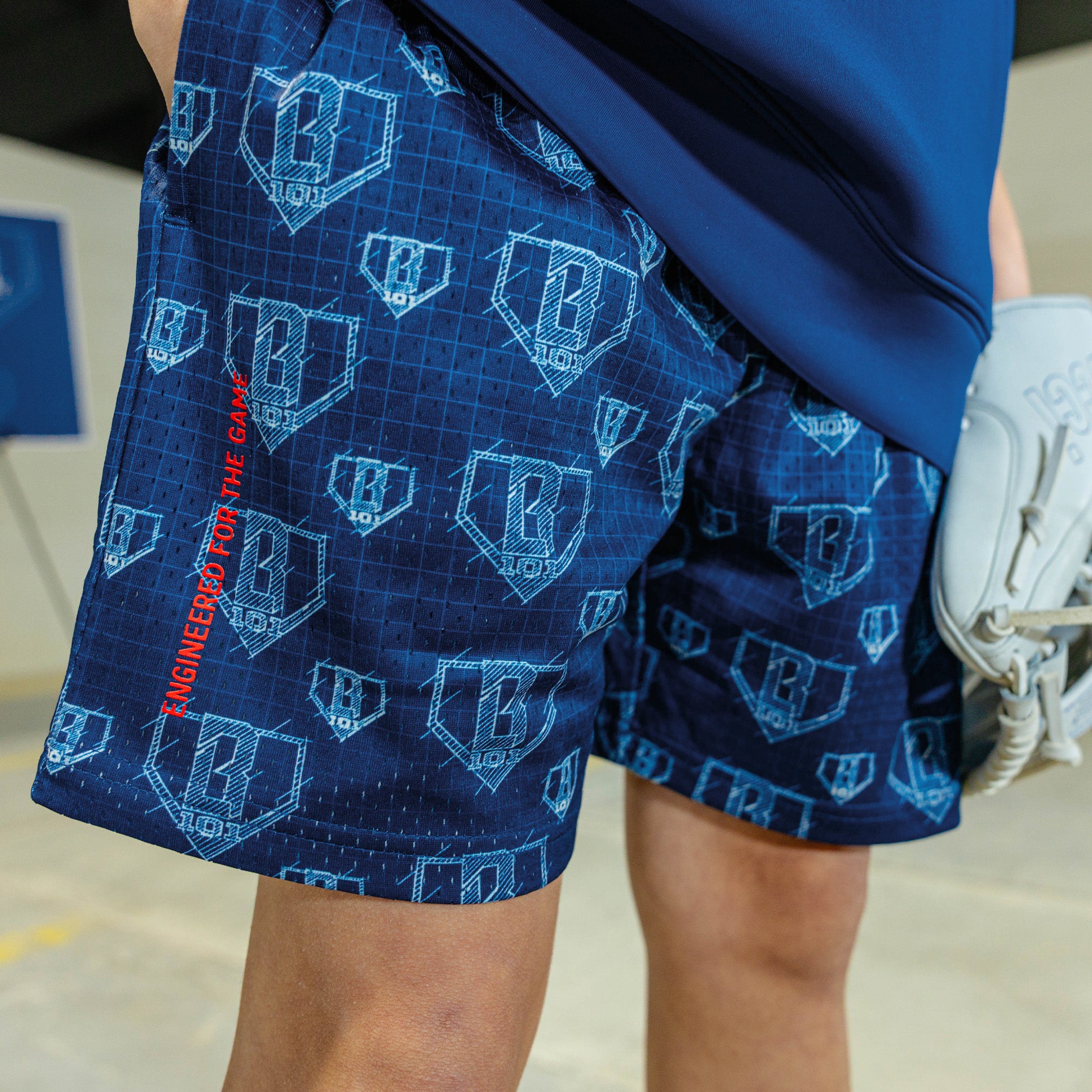Introducing the Engineered For The Game Shorts – Blue. Blueprint precision meets all-over flex. These bold shorts feature a repeating BL101 logo pattern across the entire design with blueprint grid detailing and “Engineered For The Game” down the leg. Maximum coverage, maximum statement. Mesh shorts Allover pattern Side pockets Drawstrings at the inner waistband Elastic Trim 100% Polyester
